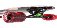 Länge: 42" (107 cm) Breite: 10" (25.5cm) Wheel Base: 32" or 33" Rocker: 0.35" Wheels: NS 72mm 78A Red Trucks: Bear 180 — Matte Black Risers: 1/8" |